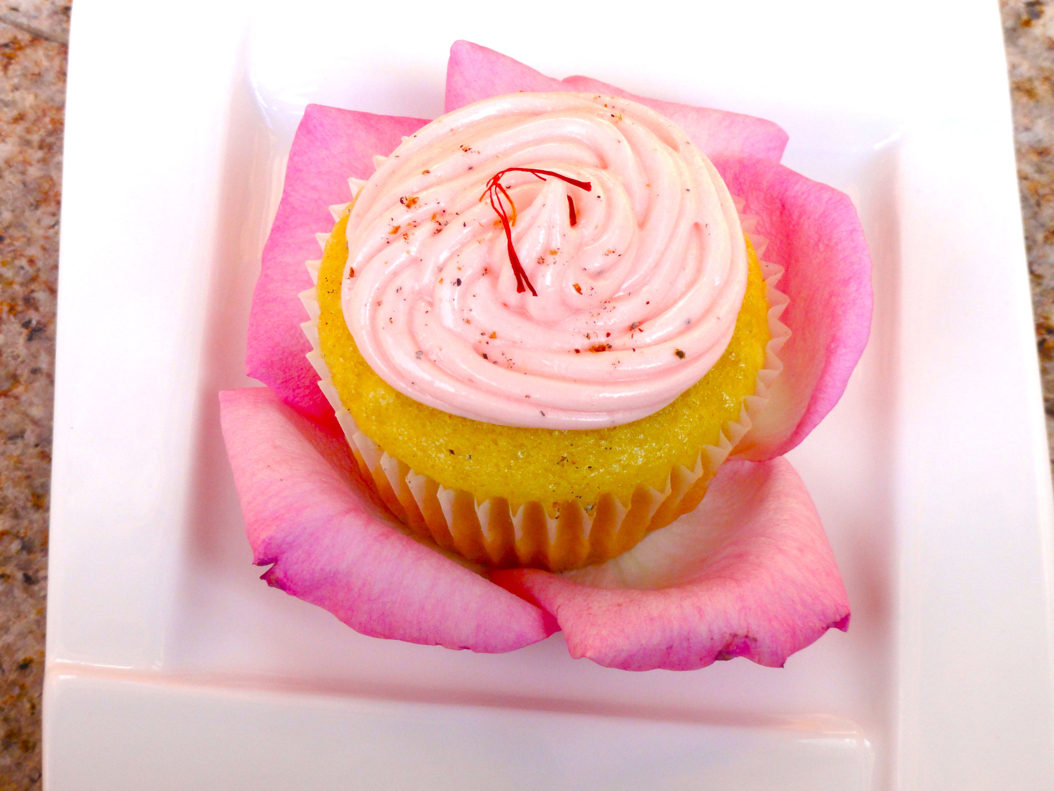 Mini Vegan Saffron Cupcakes with Rose-Cardamom Frosting– one of my friends finished the whole plate! (I guess he liked them ;))