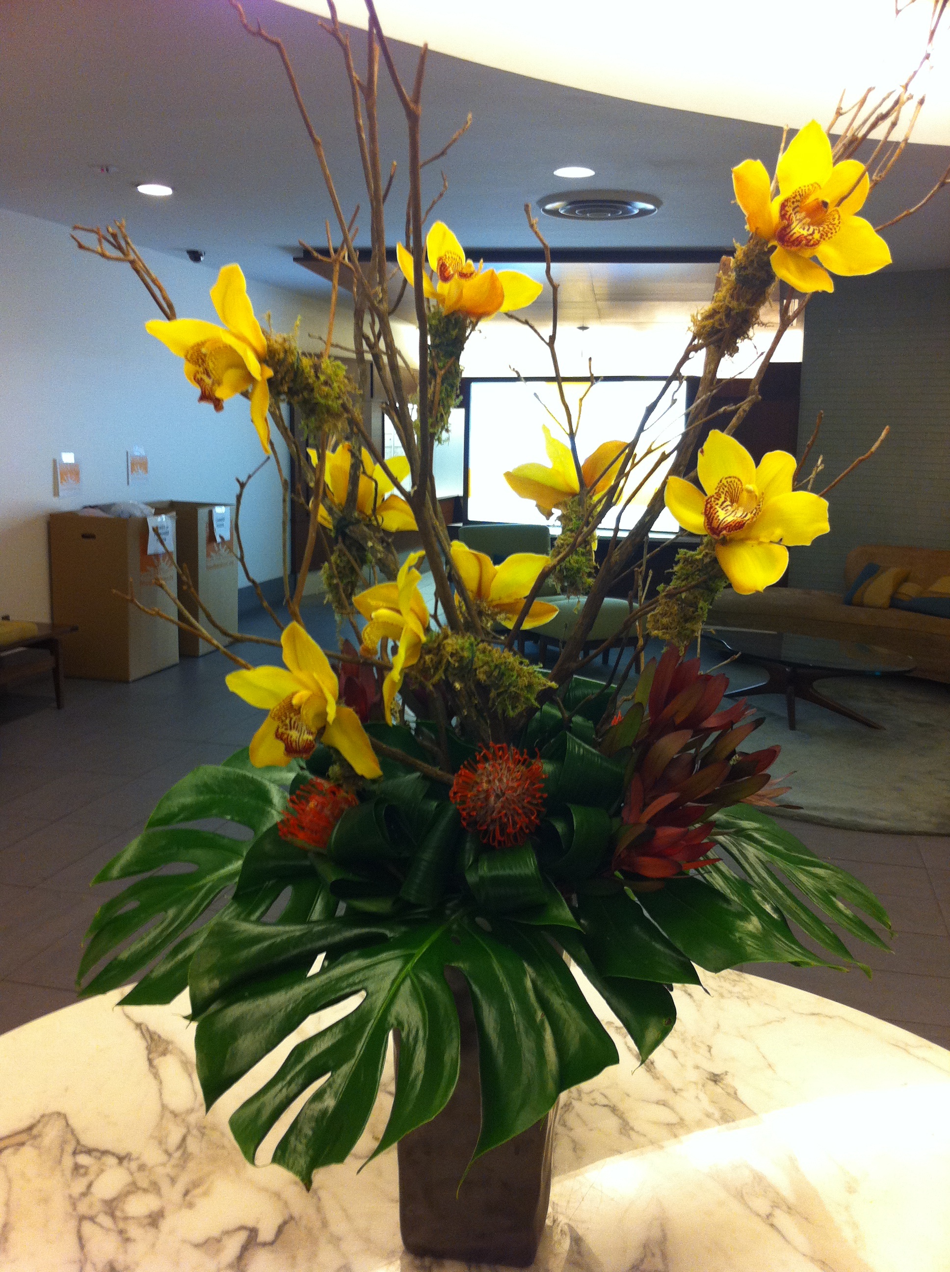 Beautiful flower arrangement in my lobby (they change it weekly)!